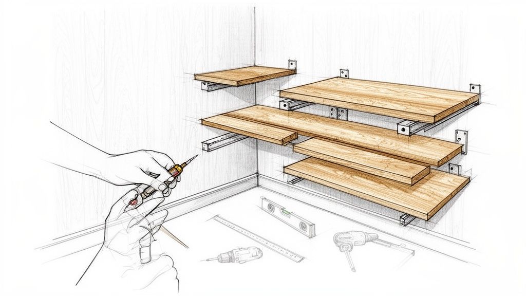 Den mest almindelige fejl, jeg ser, er, at folk bruger for korte skruer eller forkerte plugs. De glemmer, at belastningen ikke kun er vægten af selve reolen, men også alt det, der skal stå på den. En korrekt dimensioneret montering tager højde for den samlede, maksimale vægt.
